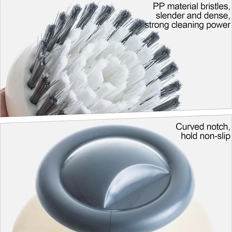 Perfect Design: The handle of our dish brush adopts a curved notch to fit the ergonomic grip design, the base of the handle is heightened for easy grip, and the PP bristles are long and dense, which can save you effort in scrubbing.