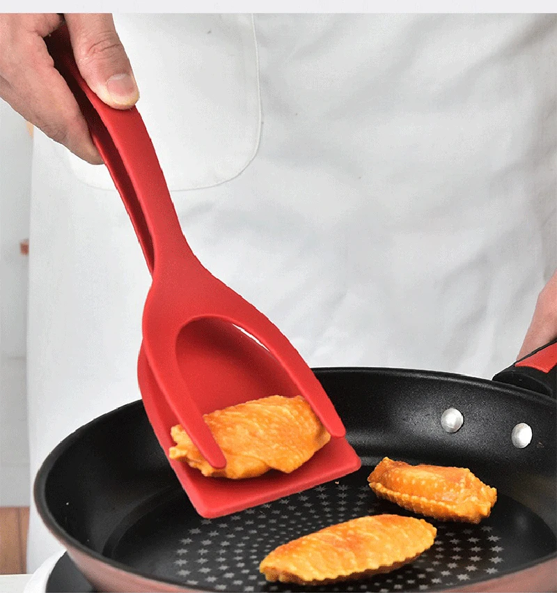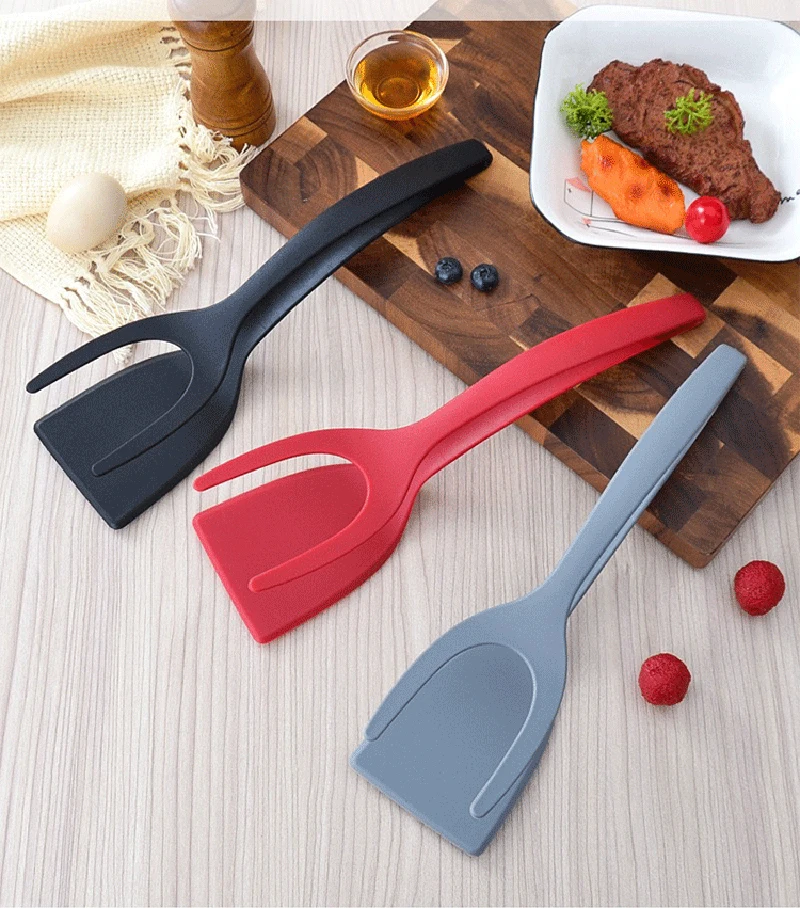 2-in-1 Kitchen Spatula Omelette Steak Omelette Flip Spatula Non Stick Food Tongs Fried Cooking Turner Tool Kitchen Accessories