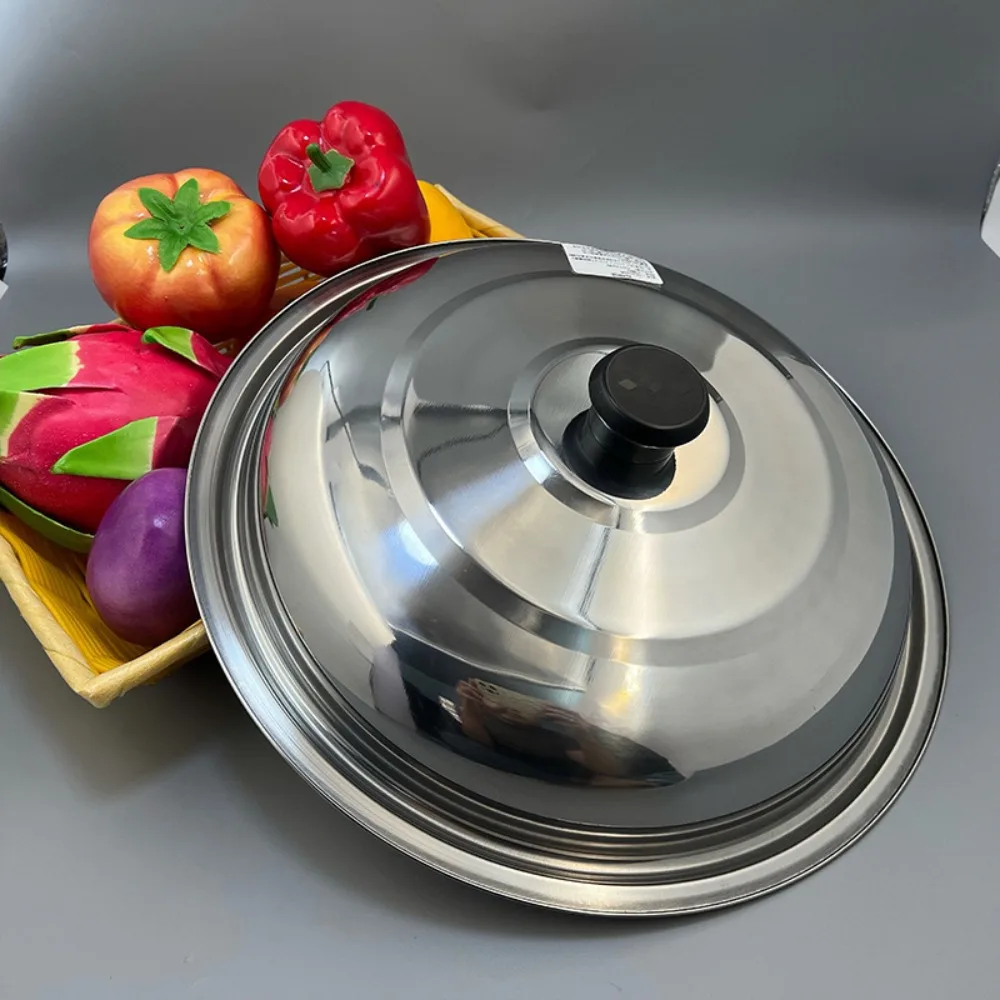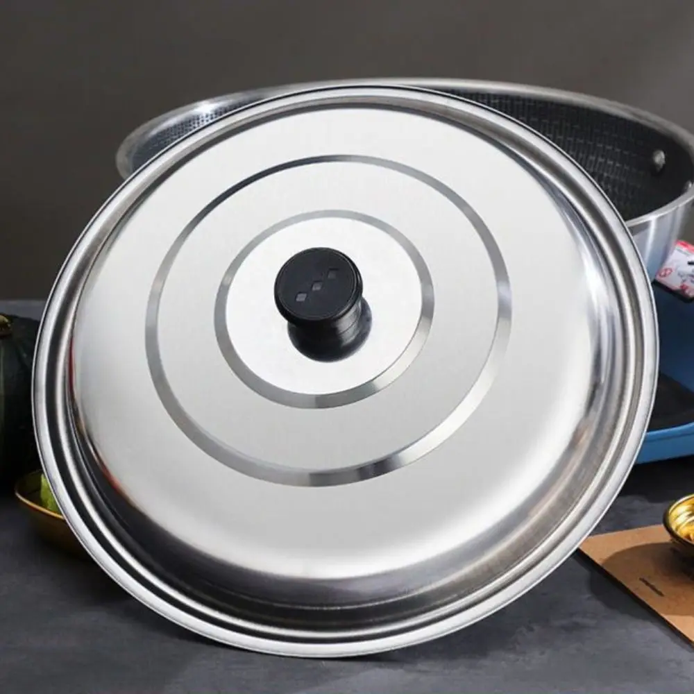 Black Plastic Knot Stainless Steel Pot Lid Household Anti- Spill Anti-Scald Wok Lid 32/34/36/38/40cm Round Pot Cover Skillets