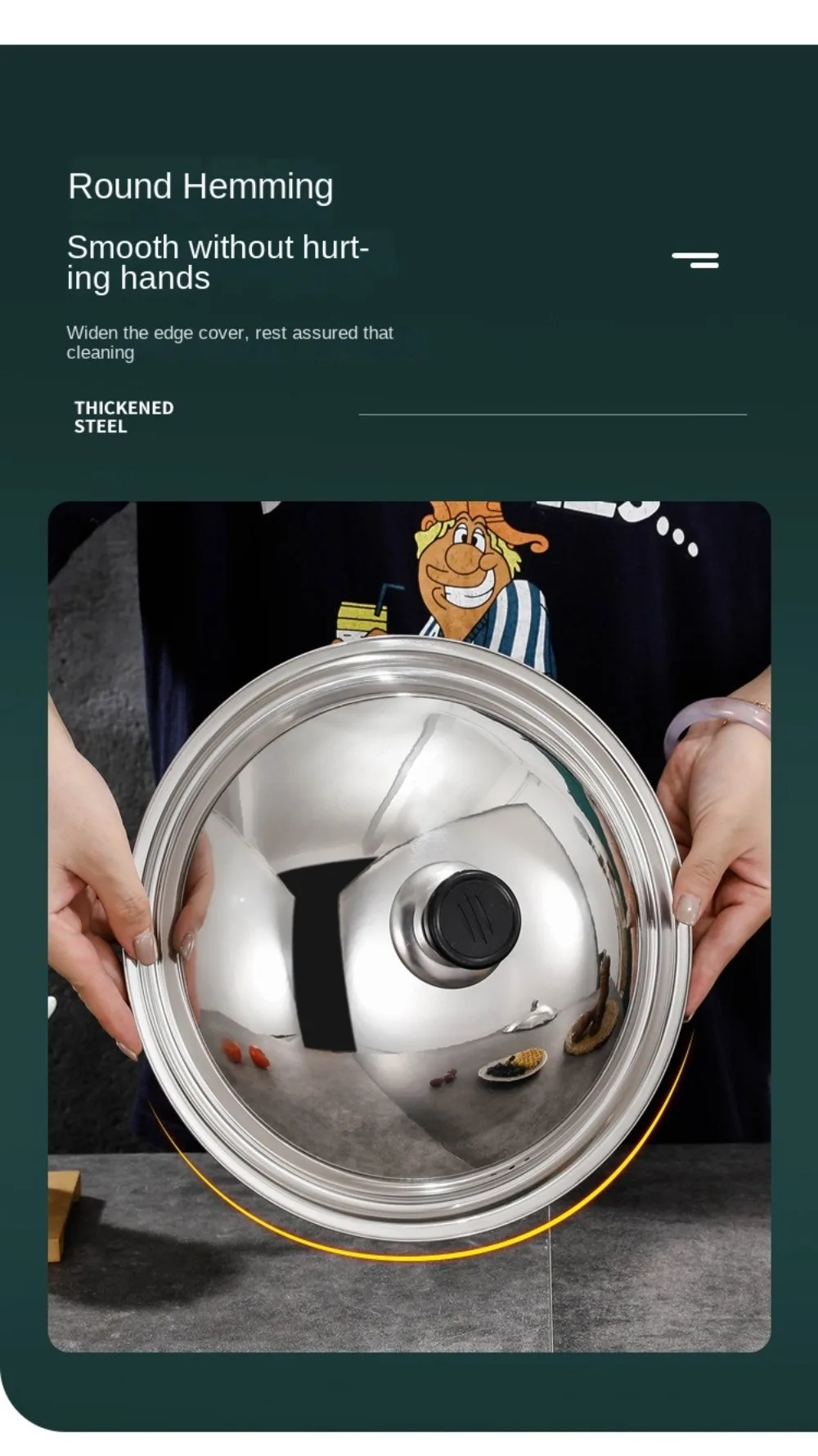 4. **Ergonomic Handle**: Each lid is equipped with an ergonomic handle that stays cool to the touch, providing a comfortable and secure grip. The handle design ensures safe and easy lifting, even when the lid is hot.