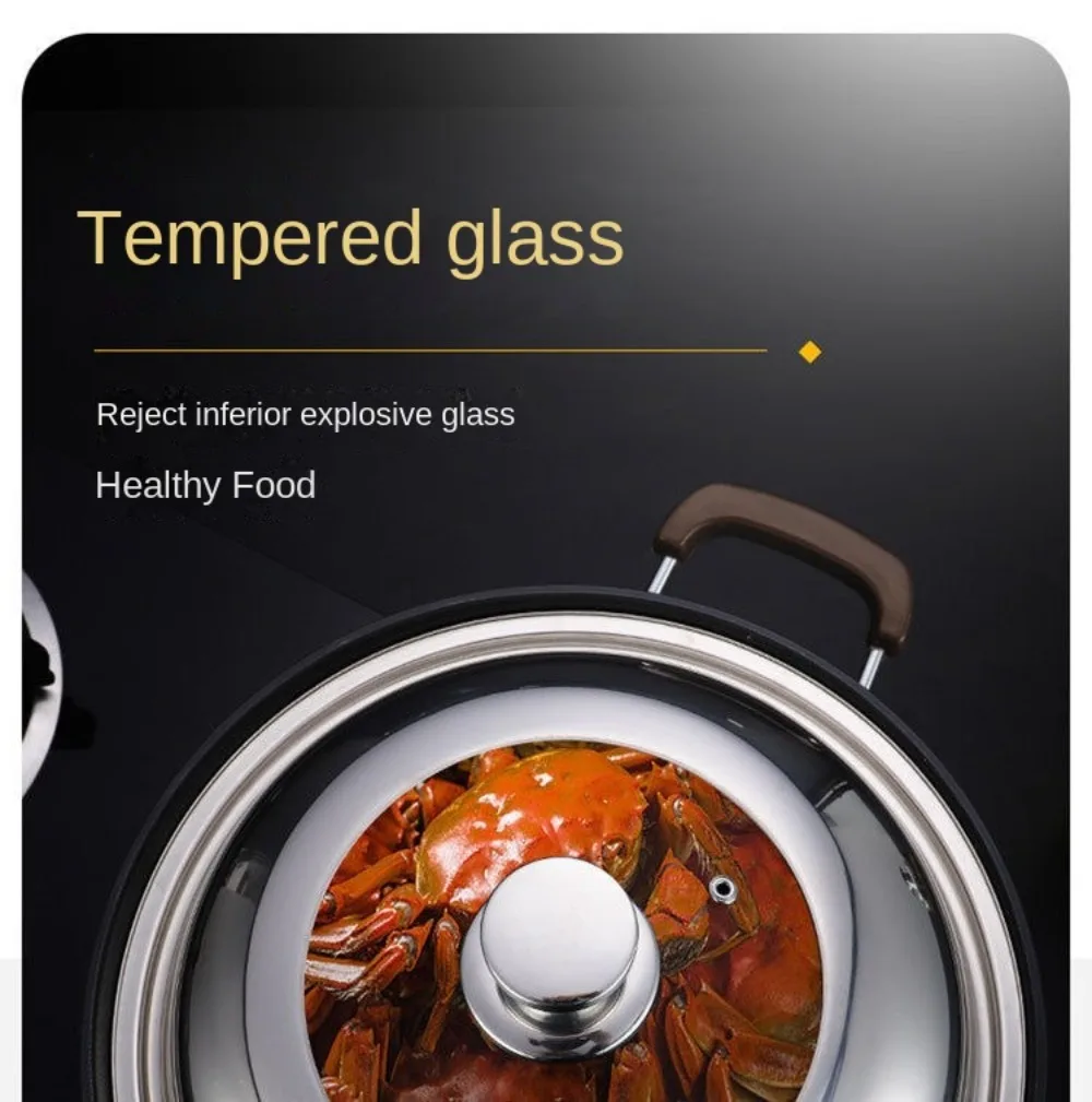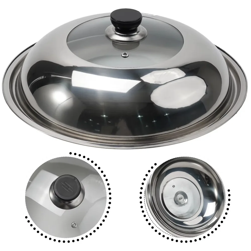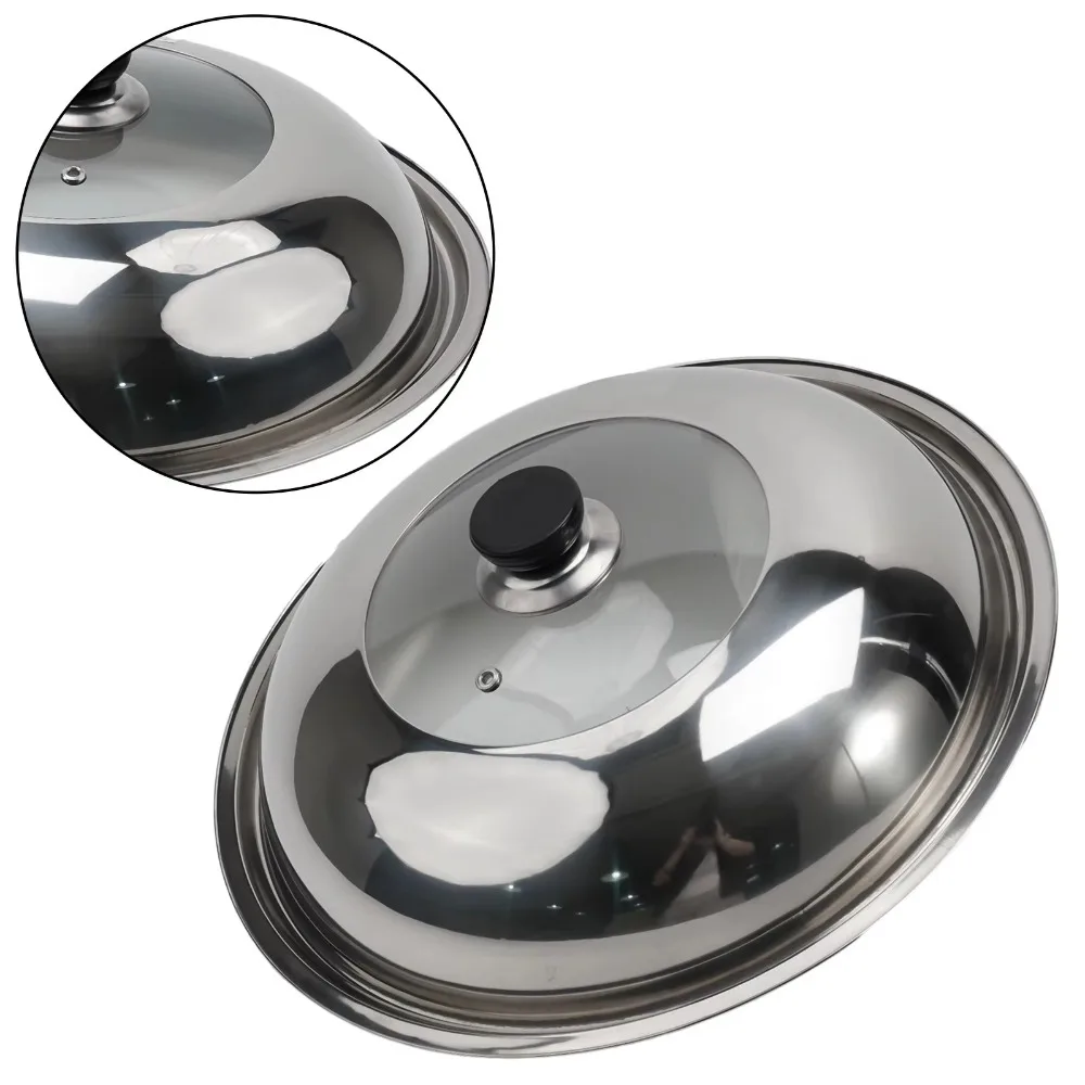 Round 28/30/32/34/36cm Cooking Pot Lid Visible Stainless Steel Wok Lids Anti-scalding Combined Pot Cover Household